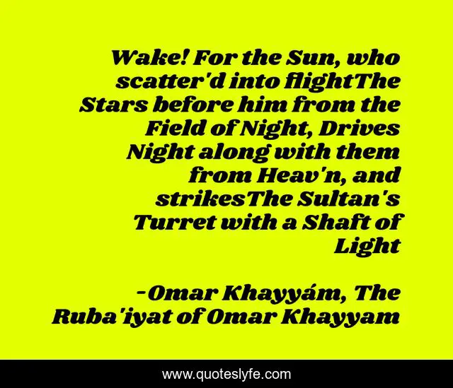 "Omar Khayyám, The Ruba'iyat of Omar Khayyam Quotes." Quoteslyfe.com, 2025. Fri. 05 Dec. 2025. <https://www.quoteslyfe.com/quote/Wake-For-the-Sun-who-scatter-d-24555>.