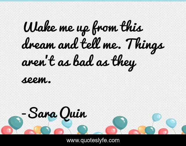 This page presents the quote "Wake me up from this dream and tell me. Things aren't as bad as they seem.". Author of this quote is Sara Quin. This quote is about tegan-and-sara, lyrics, tegan-quin, our-trees, wake-me-from-this-dream, sara-quin, under-feet-like-ours, things-aren-t-as-bad-as-the-seem,.