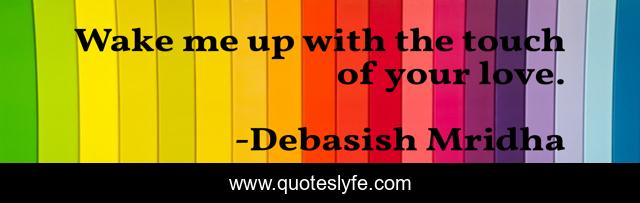 This page presents the quote "Wake me up with the touch of your love.". Author of this quote is Debasish Mridha. This quote is about wake-me-up, philosophy, debasish-mridha, quotes, debasish-mridha-md, inspirational, wake-me-up-with-love, enthusiasm, touch-of-your-love,.