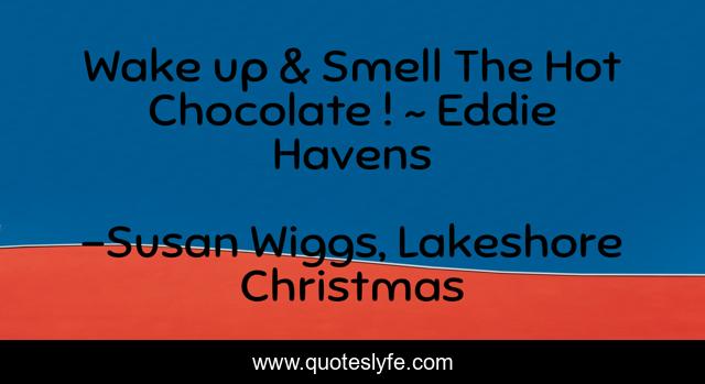 This page presents the quote "Wake up & Smell The Hot Chocolate ! ~ Eddie Havens". Author of this quote is Susan Wiggs, Lakeshore Christmas. .