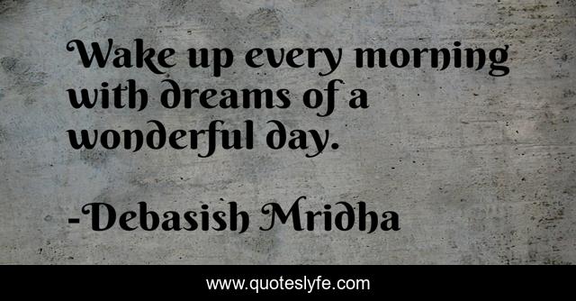 This page presents the quote "Wake up every morning with dreams of a wonderful day.". Author of this quote is Debasish Mridha. This quote is about miraboli, wonderful-day, oscar-wilde, wake-up-every-morning, philosophy, debasish-mridha, quotes, wake-up, debasish-mridha-md,.