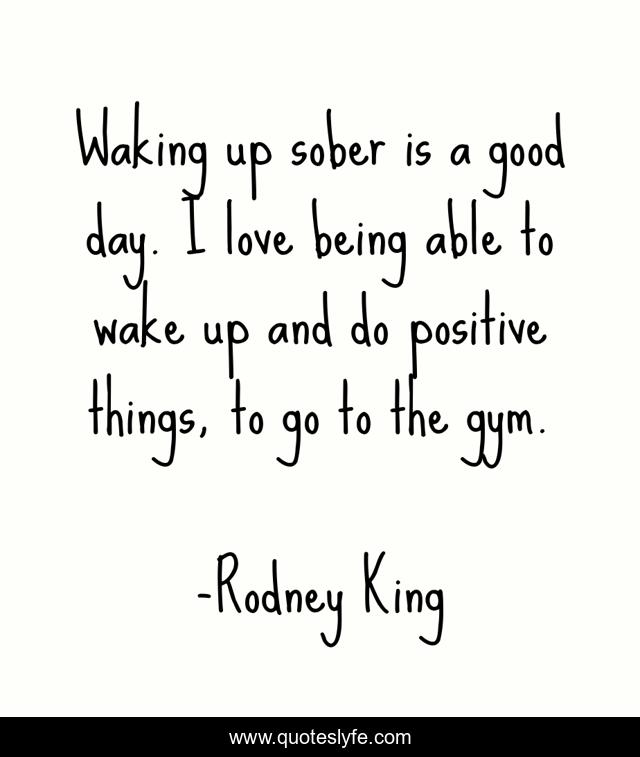 This page presents the quote "Waking up sober is a good day. I love being able to wake up and do positive things, to go to the gym.". Author of this quote is Rodney King. This quote is about good, love, day, affection,.