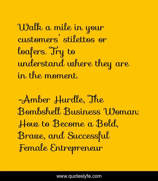 "Amber Hurdle, The Bombshell Business Woman: How to Become a Bold, Brave, and Successful Female Entrepreneur Quotes." Quoteslyfe.com, 2025. Sat. 06 Dec. 2025. <https://www.quoteslyfe.com/quote/Walk-a-mile-in-your-customers-stilettos-128216>.
