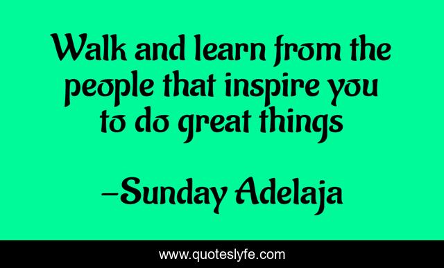 This page presents the quote "Walk and learn from the people that inspire you to do great things". Author of this quote is Sunday Adelaja. This quote is about great, blessing, finance, money, work, life, job, joblessness, purpose,.