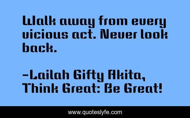 "Lailah Gifty Akita, Think Great: Be Great! Quotes." Quoteslyfe.com, 2025. Fri. 05 Dec. 2025. <https://www.quoteslyfe.com/quote/Walk-away-from-every-vicious-act-Never-183796>.