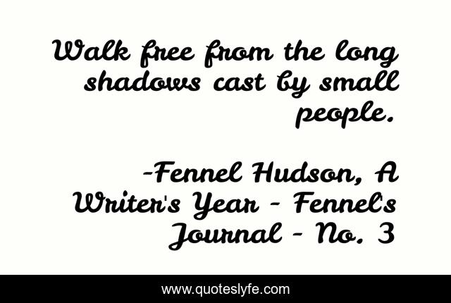 This page presents the quote "Walk free from the long shadows cast by small people.". Author of this quote is Fennel Hudson, A Writer's Year - Fennel's Journal - No. 3. This quote is about motivation, courage, self-confidence, commitment, conviction,.