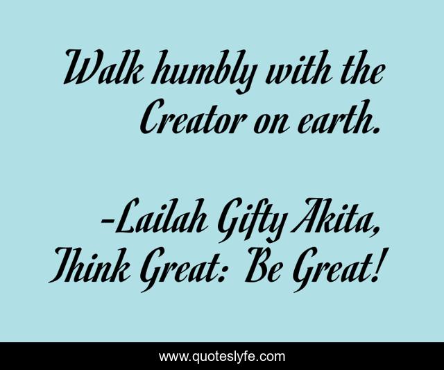 "Lailah Gifty Akita, Think Great: Be Great! Quotes." Quoteslyfe.com, 2025. Sat. 06 Dec. 2025. <https://www.quoteslyfe.com/quote/Walk-humbly-with-the-Creator-on-earth-169197>.