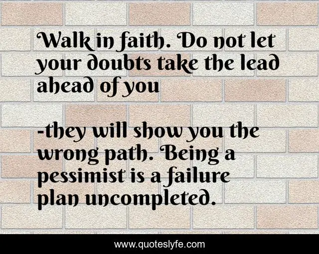 "they will show you the wrong path. Being a pessimist is a failure plan uncompleted. Quotes." Quoteslyfe.com, 2025. Sat. 06 Dec. 2025. <https://www.quoteslyfe.com/quote/Walk-in-faith-Do-not-let-your-129609>.
