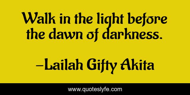 "Lailah Gifty Akita Quotes." Quoteslyfe.com, 2025. Sat. 06 Dec. 2025. <https://www.quoteslyfe.com/quote/Walk-in-the-light-before-the-dawn-85598>.