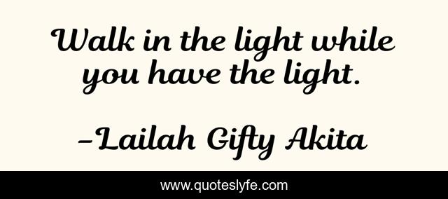 "Lailah Gifty Akita Quotes." Quoteslyfe.com, 2025. Fri. 05 Dec. 2025. <https://www.quoteslyfe.com/quote/Walk-in-the-light-while-you-have-85610>.
