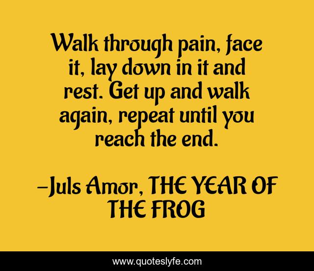 "Juls Amor, THE YEAR OF THE FROG Quotes." Quoteslyfe.com, 2025. Sat. 06 Dec. 2025. <https://www.quoteslyfe.com/quote/Walk-through-pain-face-it-lay-down-143763>.