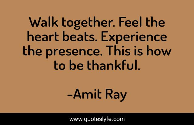 "Amit Ray Quotes." Quoteslyfe.com, 2025. Tue. 09 Dec. 2025. <https://www.quoteslyfe.com/quote/Walk-together-Feel-the-heart-beats-Experience-35118>.