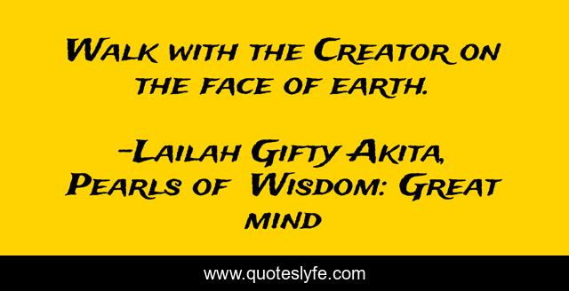 "Lailah Gifty Akita, Pearls of Wisdom: Great mind Quotes." Quoteslyfe.com, 2025. Fri. 05 Dec. 2025. <https://www.quoteslyfe.com/quote/Walk-with-the-Creator-on-the-face-98690>.