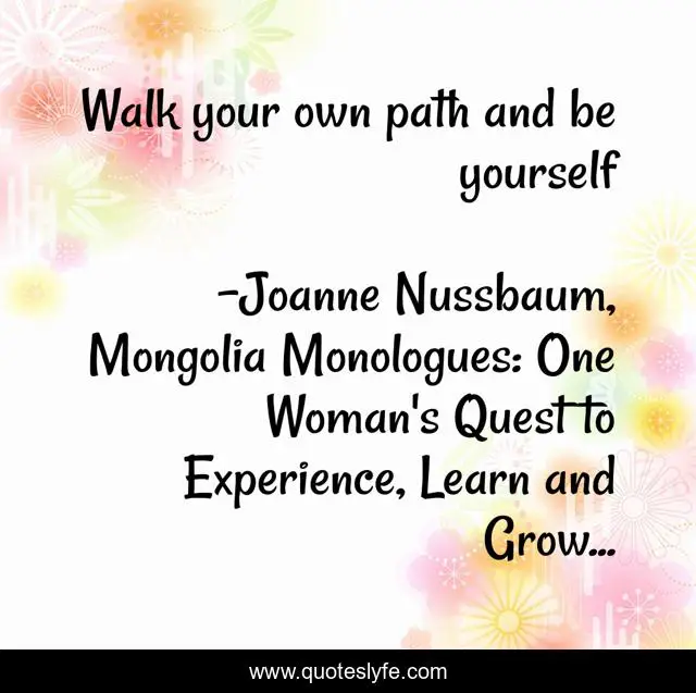 "Joanne Nussbaum, Mongolia Monologues: One Woman's Quest to Experience, Learn and Grow... Quotes." Quoteslyfe.com, 2025. Sat. 06 Dec. 2025. <https://www.quoteslyfe.com/quote/Walk-your-own-path-and-be-yourself-137379>.