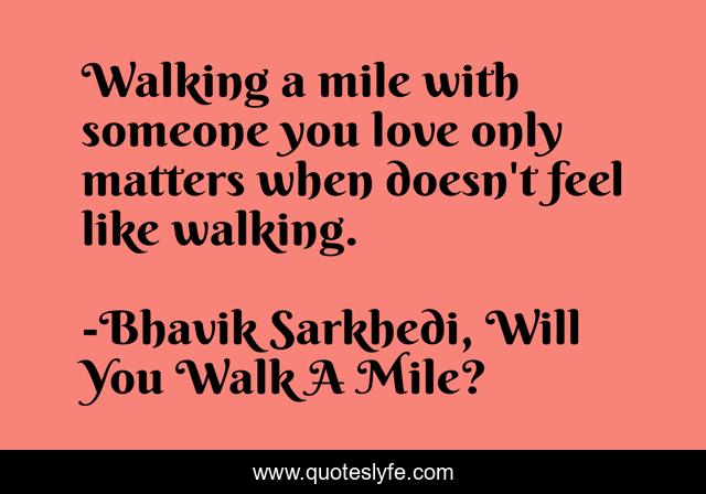 "Bhavik Sarkhedi, Will You Walk A Mile? Quotes." Quoteslyfe.com, 2025. Sat. 06 Dec. 2025. <https://www.quoteslyfe.com/quote/Walking-a-mile-with-someone-you-love-215424>.