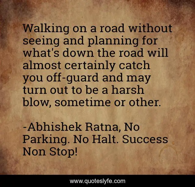 "Abhishek Ratna, No Parking. No Halt. Success Non Stop! Quotes." Quoteslyfe.com, 2025. Fri. 05 Dec. 2025. <https://www.quoteslyfe.com/quote/Walking-on-a-road-without-seeing-and-257427>.