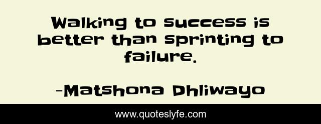 "Matshona Dhliwayo Quotes." Quoteslyfe.com, 2025. Sat. 06 Dec. 2025. <https://www.quoteslyfe.com/quote/Walking-to-success-is-better-than-sprinting-109307>.