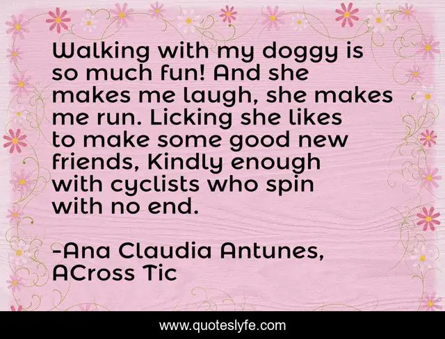 "Ana Claudia Antunes, ACross Tic Quotes." Quoteslyfe.com, 2025. Sat. 06 Dec. 2025. <https://www.quoteslyfe.com/quote/Walking-with-my-doggy-is-so-much-126751>.