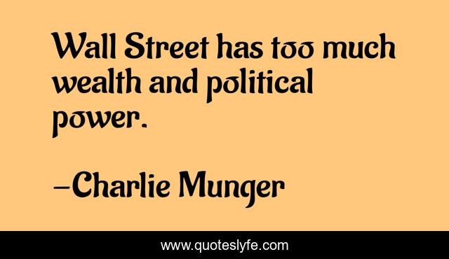 This page presents the quote "Wall Street has too much wealth and political power.". Author of this quote is Charlie Munger. This quote is about political, wealth, power,.