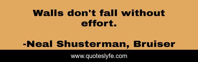 This page presents the quote "Walls don't fall without effort.". Author of this quote is Neal Shusterman, Bruiser. This quote is about walls, effort, fall,.