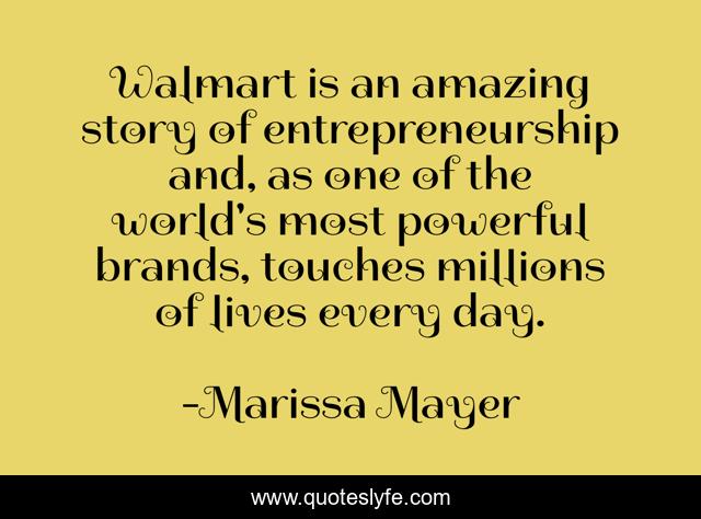 This page presents the quote "Walmart is an amazing story of entrepreneurship and, as one of the world's most powerful brands, touches millions of lives every day.". Author of this quote is Marissa Mayer. This quote is about world, powerful, day,.