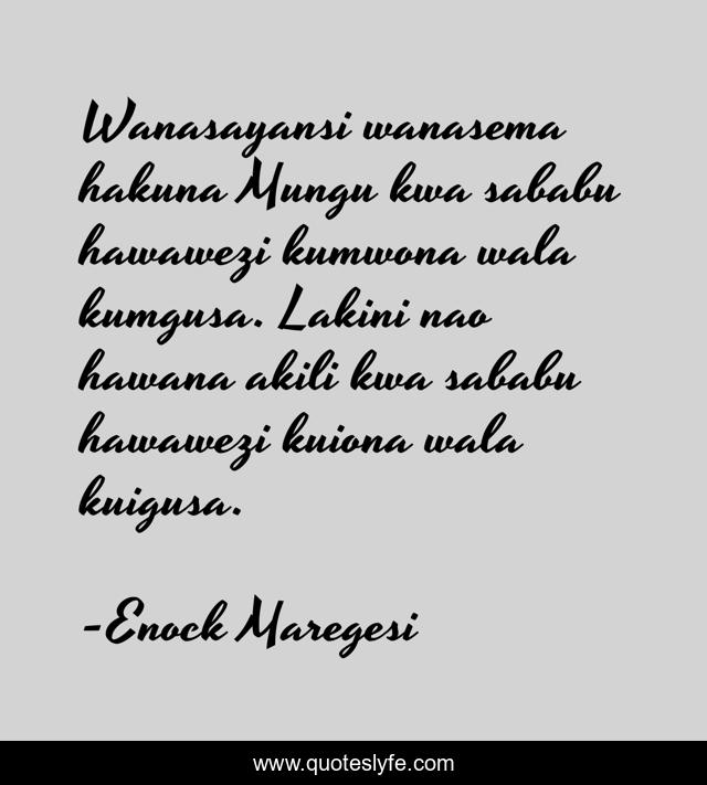 "Enock Maregesi Quotes." Quoteslyfe.com, 2025. Sat. 06 Dec. 2025. <https://www.quoteslyfe.com/quote/Wanasayansi-wanasema-hakuna-Mungu-kwa-sababu-hawawezi-11735>.