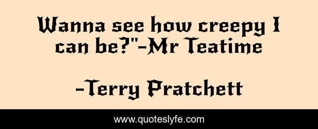 This page presents the quote "Wanna see how creepy I can be?"-Mr Teatime". Author of this quote is Terry Pratchett. This quote is about movies, teatime, hogfather,.