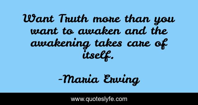 This page presents the quote "Want Truth more than you want to awaken and the awakening takes care of itself.". Author of this quote is Maria Erving. This quote is about spirituality, enlightenment, spiritual-awakening, truth-seeking,.