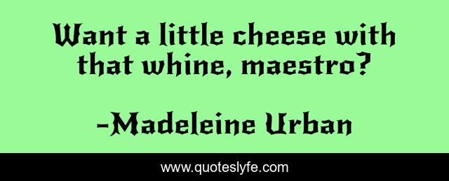 "Madeleine Urban Quotes." Quoteslyfe.com, 2025. Sat. 06 Dec. 2025. <https://www.quoteslyfe.com/quote/Want-a-little-cheese-with-that-whine-40690>.