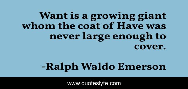 This page presents the quote "Want is a growing giant whom the coat of Have was never large enough to cover.". Author of this quote is Ralph Waldo Emerson. .