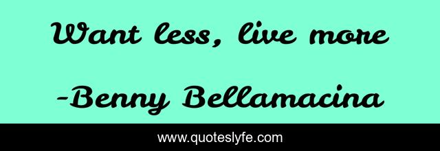 "Benny Bellamacina Quotes." Quoteslyfe.com, 2025. Fri. 05 Dec. 2025. <https://www.quoteslyfe.com/quote/Want-less-live-more-8208>.