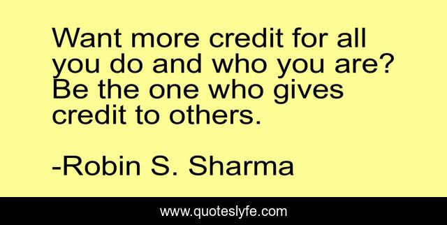 This page presents the quote "Want more credit for all you do and who you are? Be the one who gives credit to others.". Author of this quote is Robin S. Sharma. .