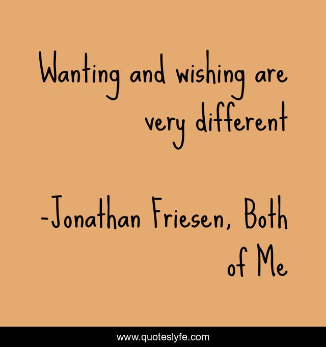 "Jonathan Friesen, Both of Me Quotes." Quoteslyfe.com, 2025. Fri. 05 Dec. 2025. <https://www.quoteslyfe.com/quote/Wanting-and-wishing-are-very-different-234170>.