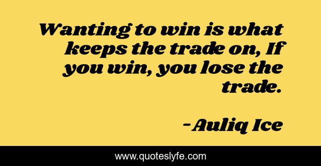 This page presents the quote "Wanting to win is what keeps the trade on, If you win, you lose the trade.". Author of this quote is Auliq Ice. This quote is about succes, confidence, success, positive, motivational, inspiarational, failure, optimistic, inspirational,.