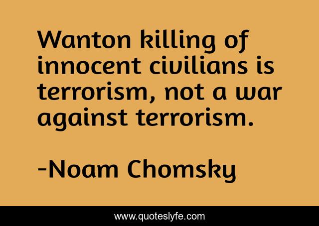 "Noam Chomsky Quotes." Quoteslyfe.com, 2025. Mon. 08 Dec. 2025. <https://www.quoteslyfe.com/quote/Wanton-killing-of-innocent-civilians-is-terrorism-285655>.