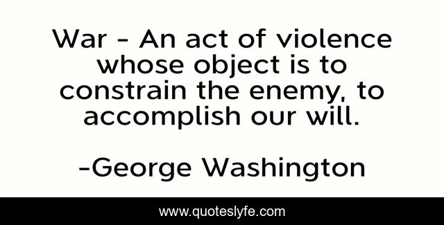This page presents the quote "War - An act of violence whose object is to constrain the enemy, to accomplish our will.". Author of this quote is George Washington. This quote is about enemy, violence, accomplish,.