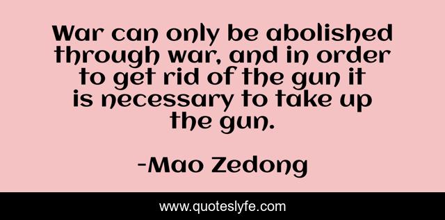 This page presents the quote "War can only be abolished through war, and in order to get rid of the gun it is necessary to take up the gun.". Author of this quote is Mao Zedong. This quote is about rid, through,.