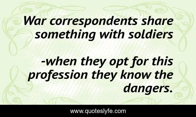 "when they opt for this profession they know the dangers. Quotes." Quoteslyfe.com, 2025. Sat. 06 Dec. 2025. <https://www.quoteslyfe.com/quote/War-correspondents-share-something-with-soldiers-52788>.