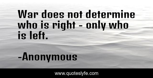 This page presents the quote "War does not determine who is right - only who is left.". Author of this quote is Anonymous. .