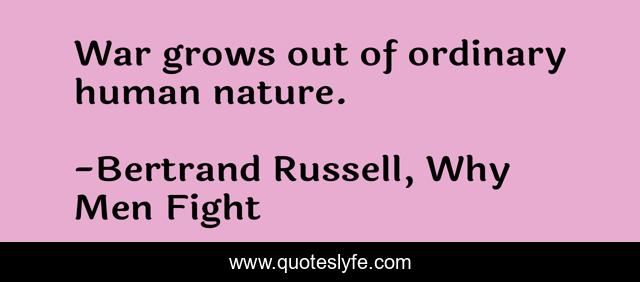 "Bertrand Russell, Why Men Fight Quotes." Quoteslyfe.com, 2025. Tue. 09 Dec. 2025. <https://www.quoteslyfe.com/quote/War-grows-out-of-ordinary-human-nature-52294>.