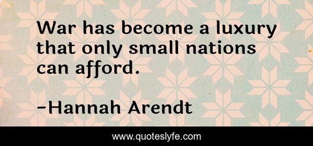 This page presents the quote "War has become a luxury that only small nations can afford.". Author of this quote is Hannah Arendt. This quote is about small, luxury, nations,.