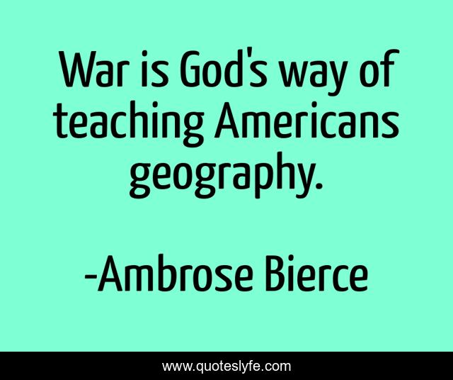 This page presents the quote "War is God's way of teaching Americans geography.". Author of this quote is Ambrose Bierce. This quote is about god, way, geography,.