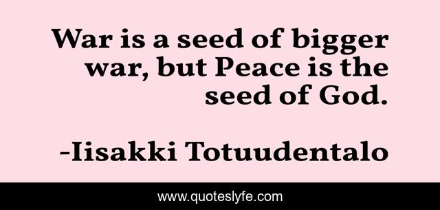 This page presents the quote "War is a seed of bigger war, but Peace is the seed of God.". Author of this quote is Iisakki Totuudentalo. This quote is about god-s-will, spiritual, peace,.