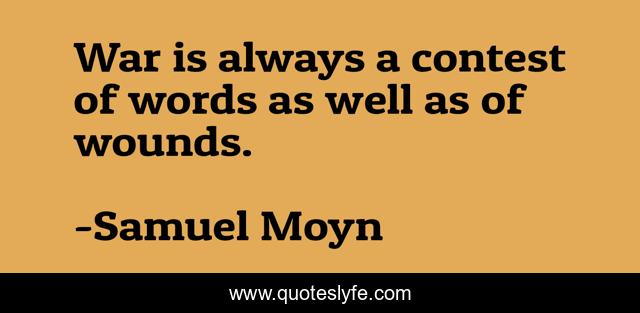 This page presents the quote "War is always a contest of words as well as of wounds.". Author of this quote is Samuel Moyn. This quote is about politics, war, history,.
