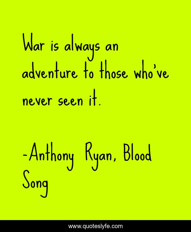 "Anthony Ryan, Blood Song Quotes." Quoteslyfe.com, 2025. Fri. 05 Dec. 2025. <https://www.quoteslyfe.com/quote/War-is-always-an-adventure-to-those-52141>.