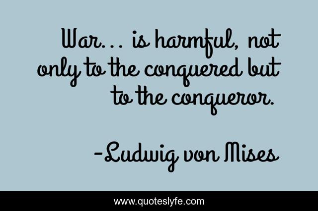 This page presents the quote "War... is harmful, not only to the conquered but to the conqueror.". Author of this quote is Ludwig von Mises. This quote is about conqueror, only, conquered,.