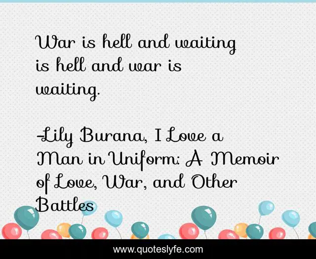 "Lily Burana, I Love a Man in Uniform: A Memoir of Love, War, and Other Battles Quotes." Quoteslyfe.com, 2025. Sat. 06 Dec. 2025. <https://www.quoteslyfe.com/quote/War-is-hell-and-waiting-is-hell-120803>.