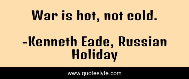 This page presents the quote "War is hot, not cold.". Author of this quote is Kenneth Eade, Russian Holiday. This quote is about the-cold-war, cold-war, war, russia,.