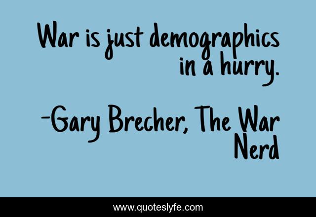 "Gary Brecher, The War Nerd Quotes." Quoteslyfe.com, 2025. Mon. 08 Dec. 2025. <https://www.quoteslyfe.com/quote/War-is-just-demographics-in-a-hurry-52237>.