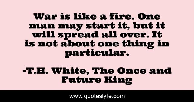 This page presents the quote "War is like a fire. One man may start it, but it will spread all over. It is not about one thing in particular.". Author of this quote is T.H. White, The Once and Future King. .